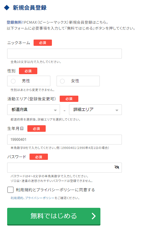 PCMAXは出会い系のなかでもプロフィール項目がとにかく多いです。
