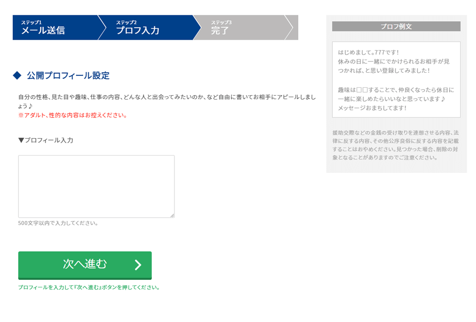 ・プロフィールとして、簡単なプロフィールを入力します。プロフィールの例文もあるため、まずは参考にして入力してみてもOKです!